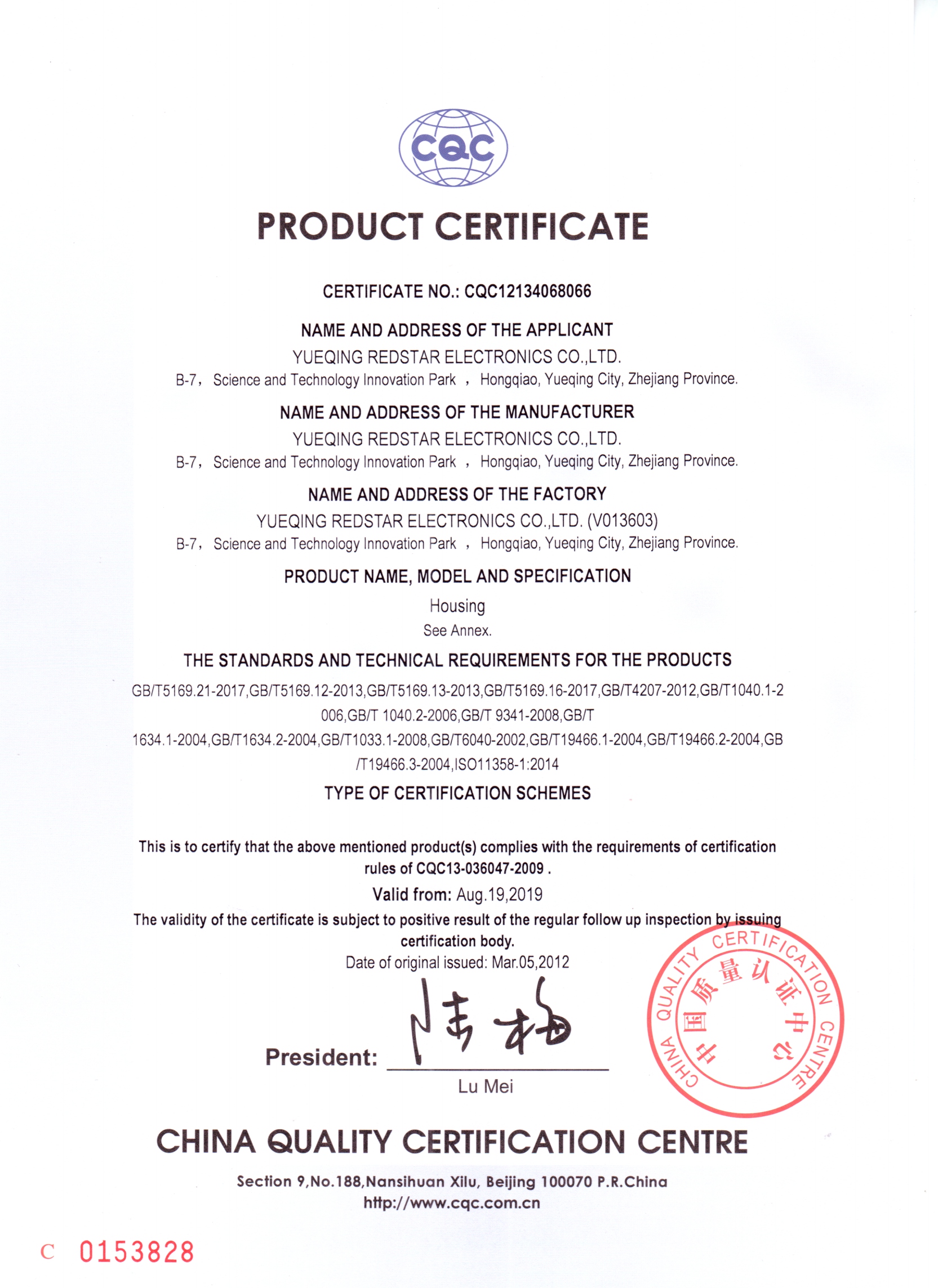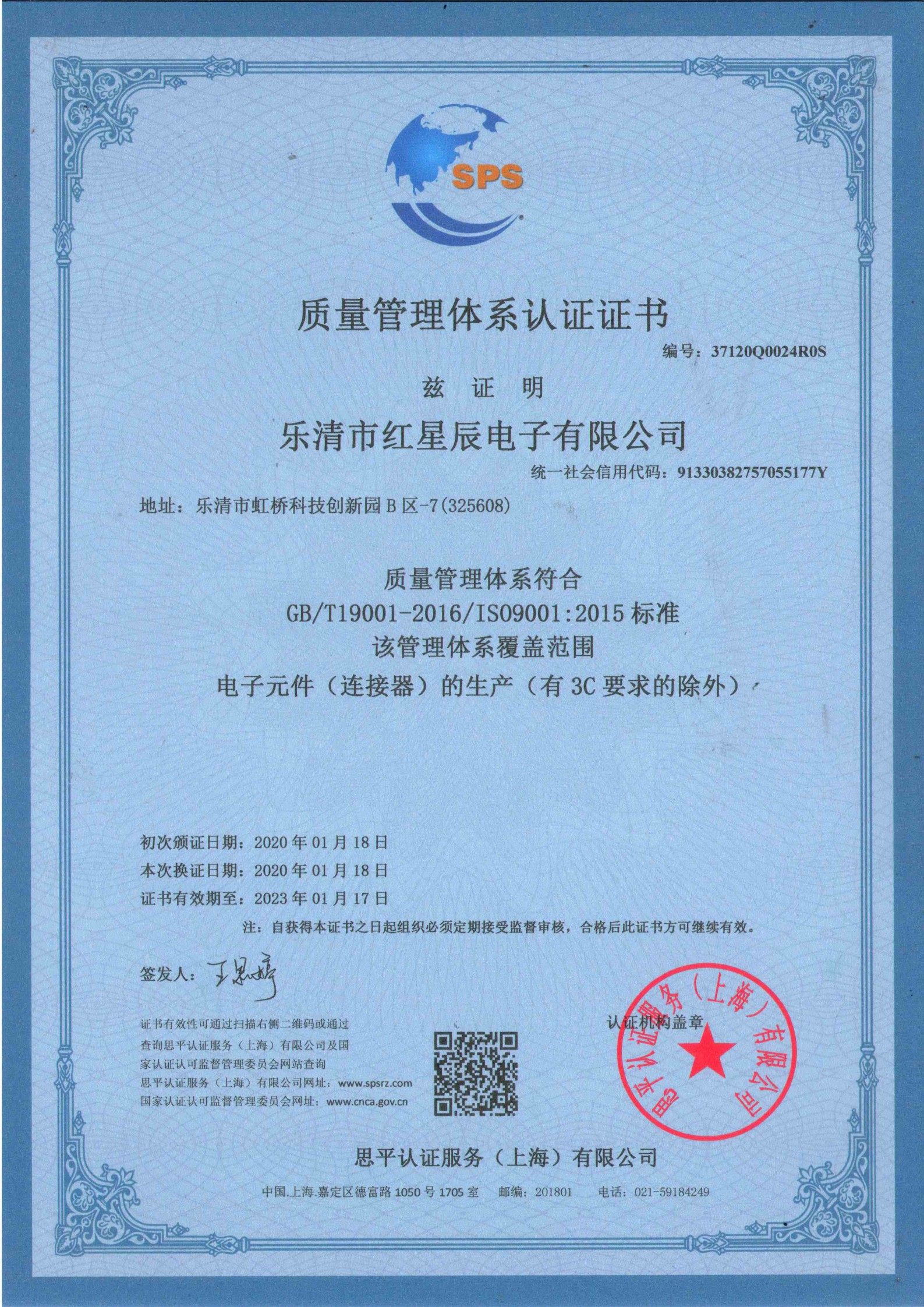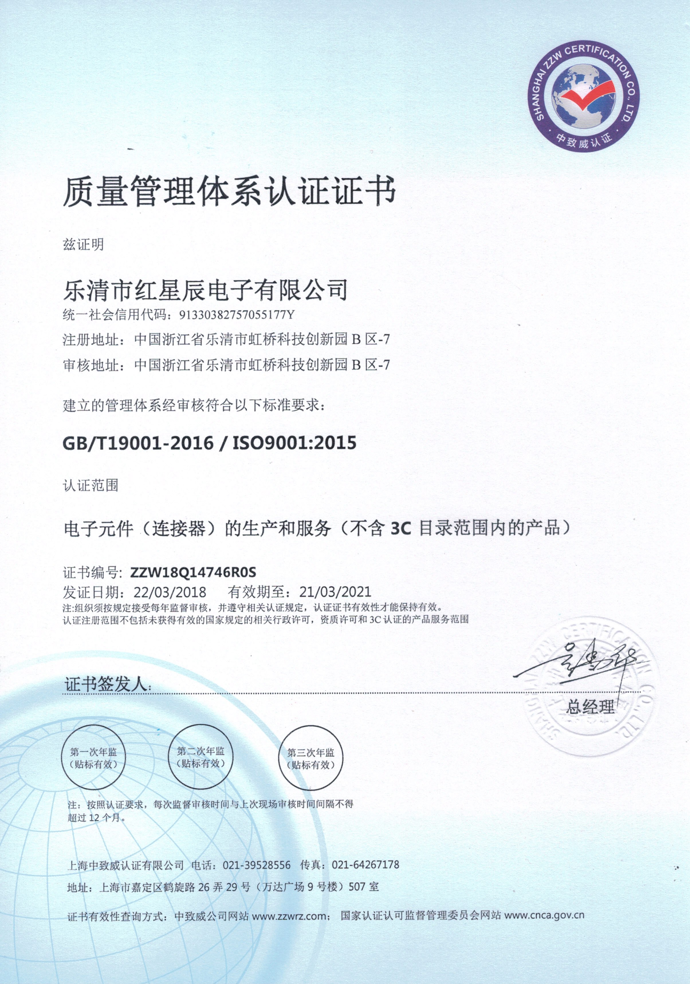 質(zhì)量管理體系認(rèn)證書-電元件