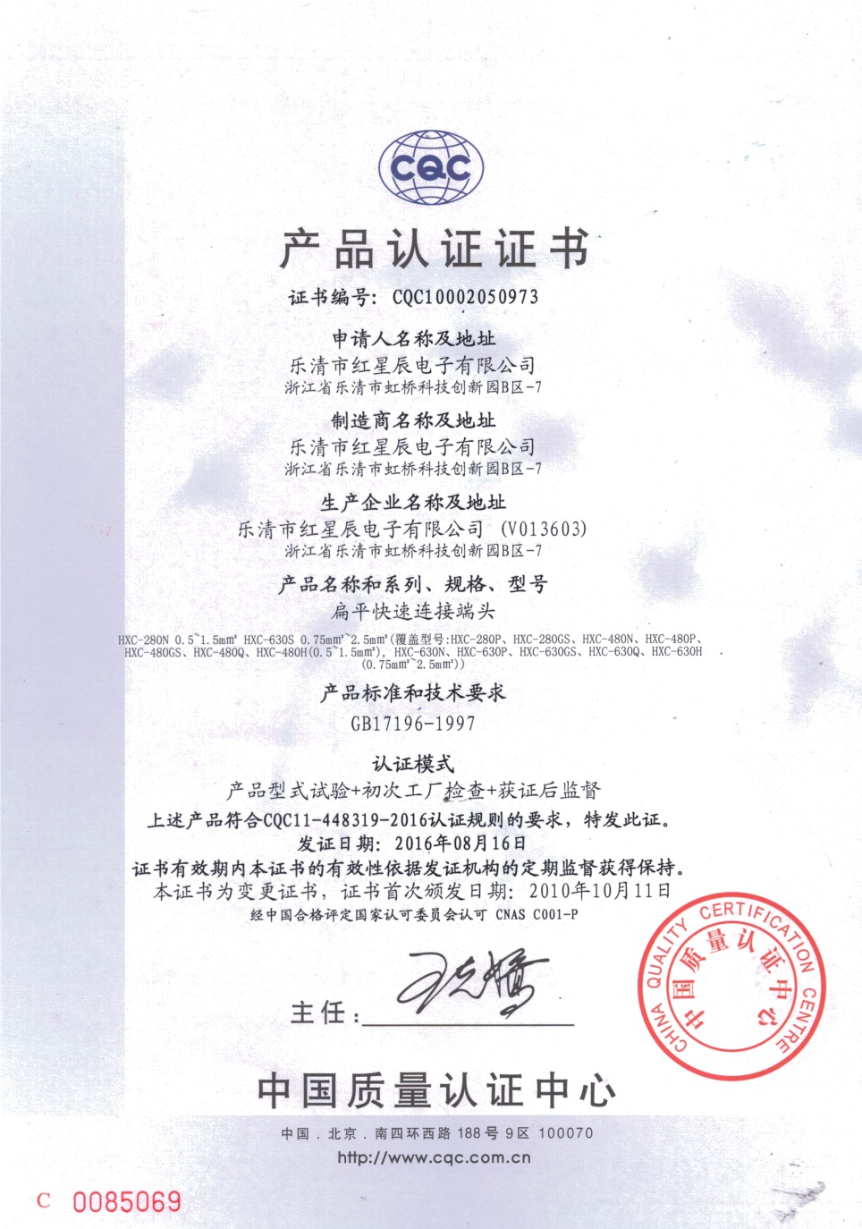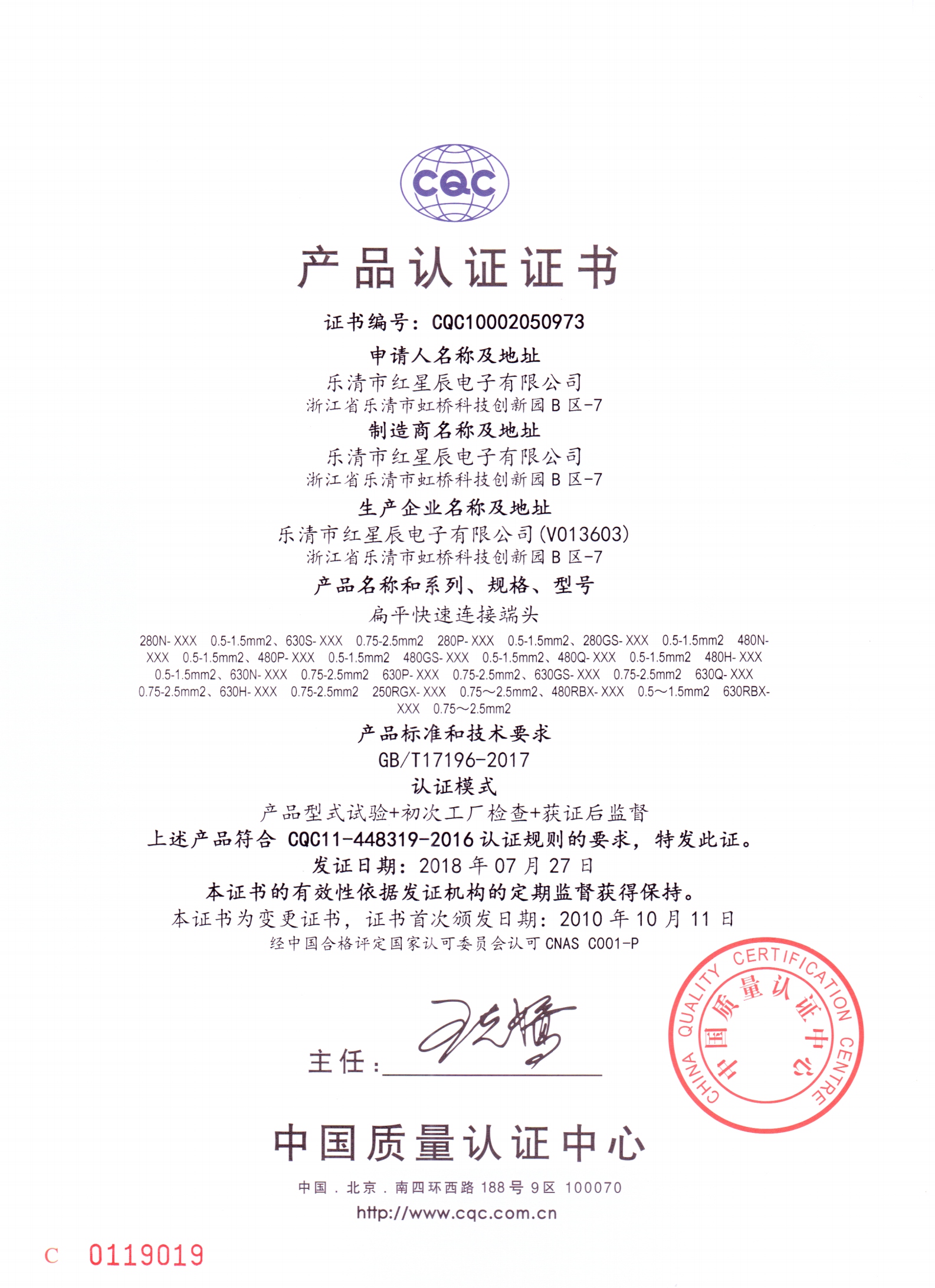 CQC金屬快捷端子證書-中文版