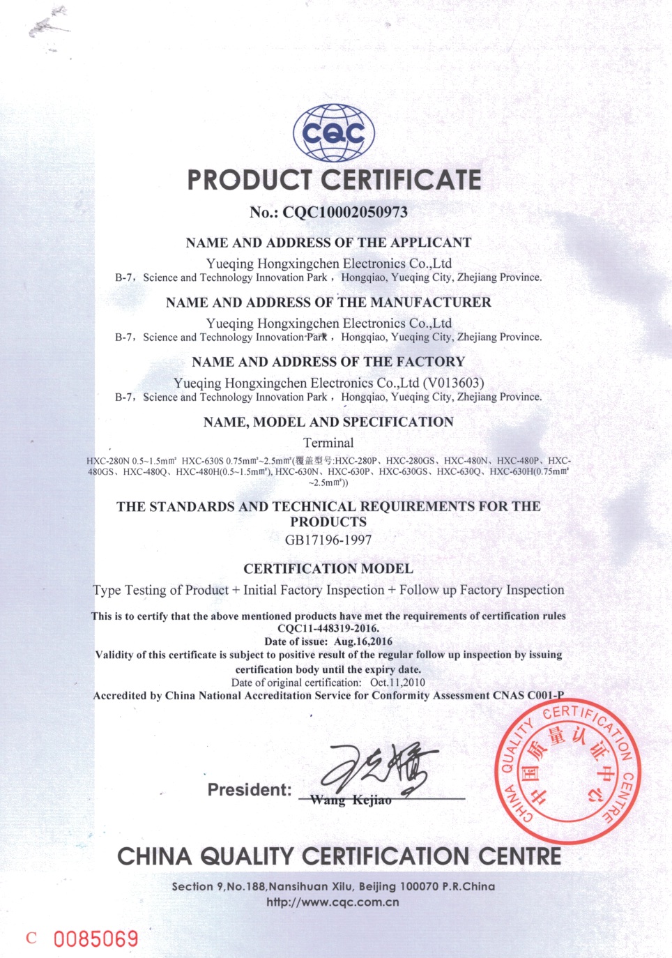 CQC金屬快捷端子證書-英文版