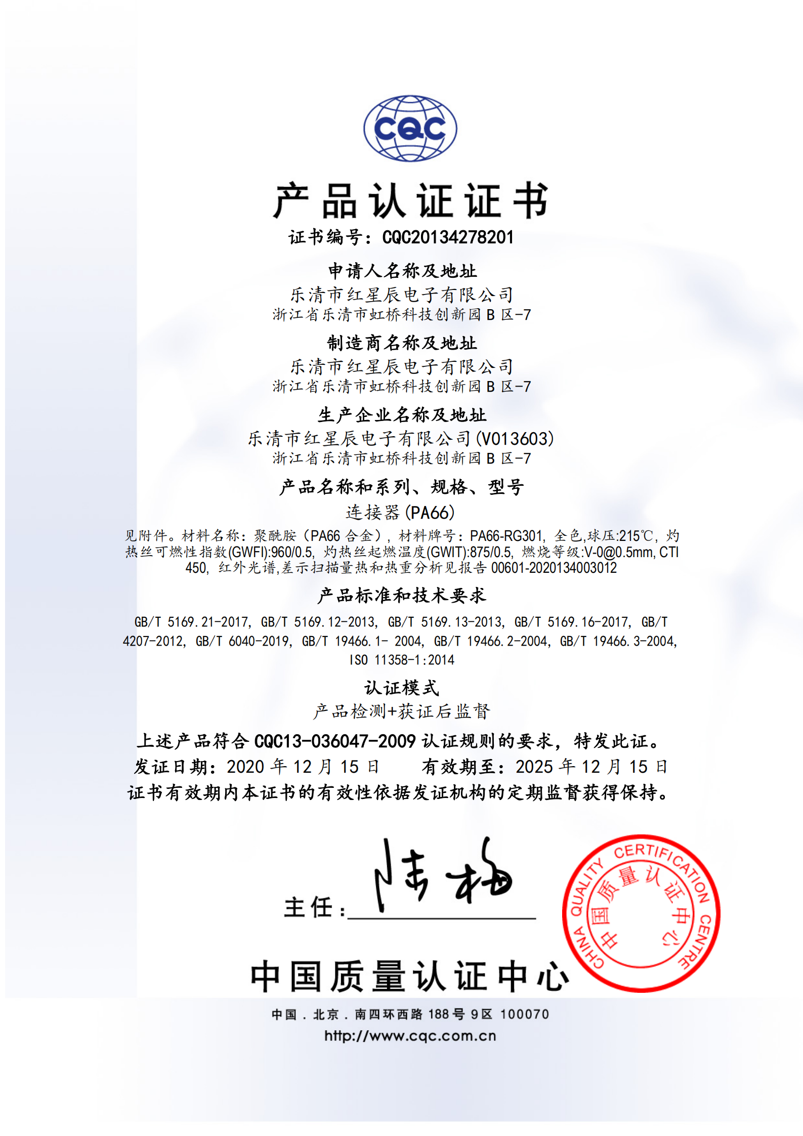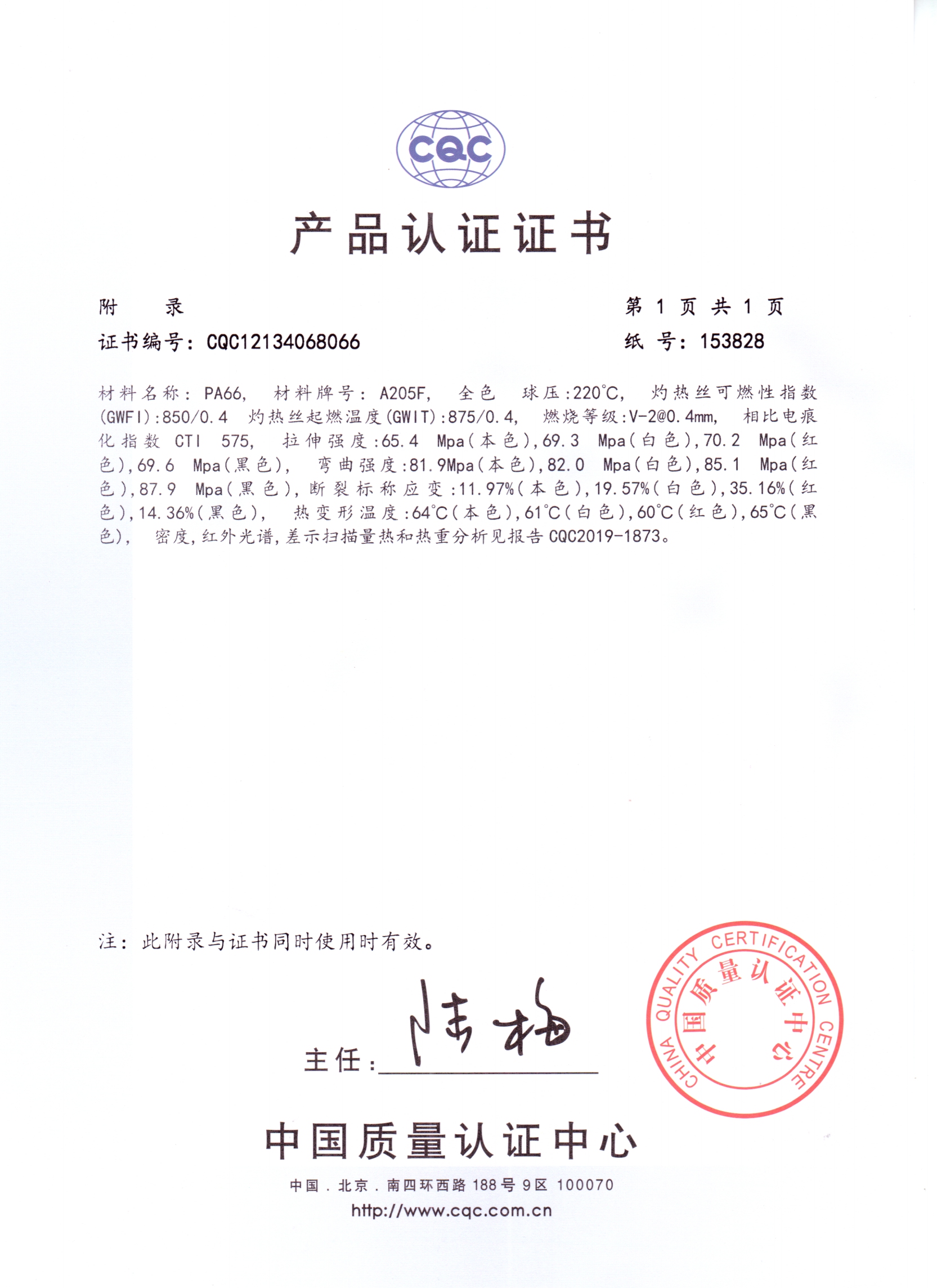 產(chǎn)品認(rèn)證書-PA66