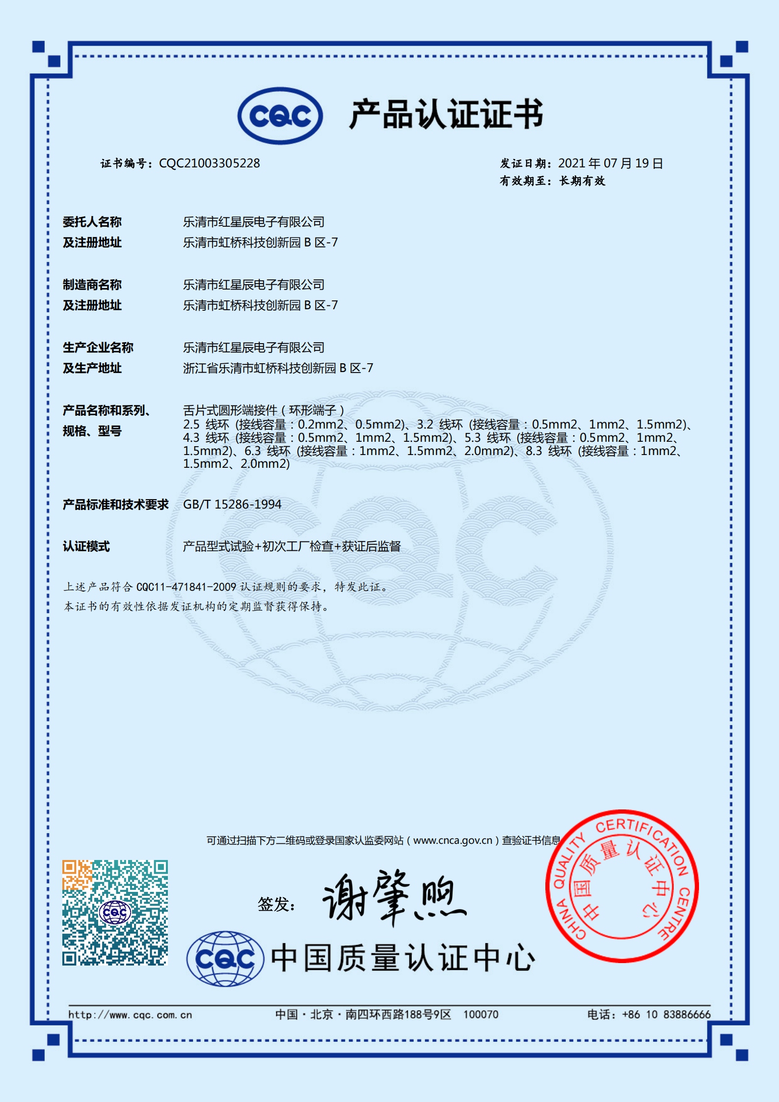 CQC環(huán)形端子認(rèn)證書-中文版