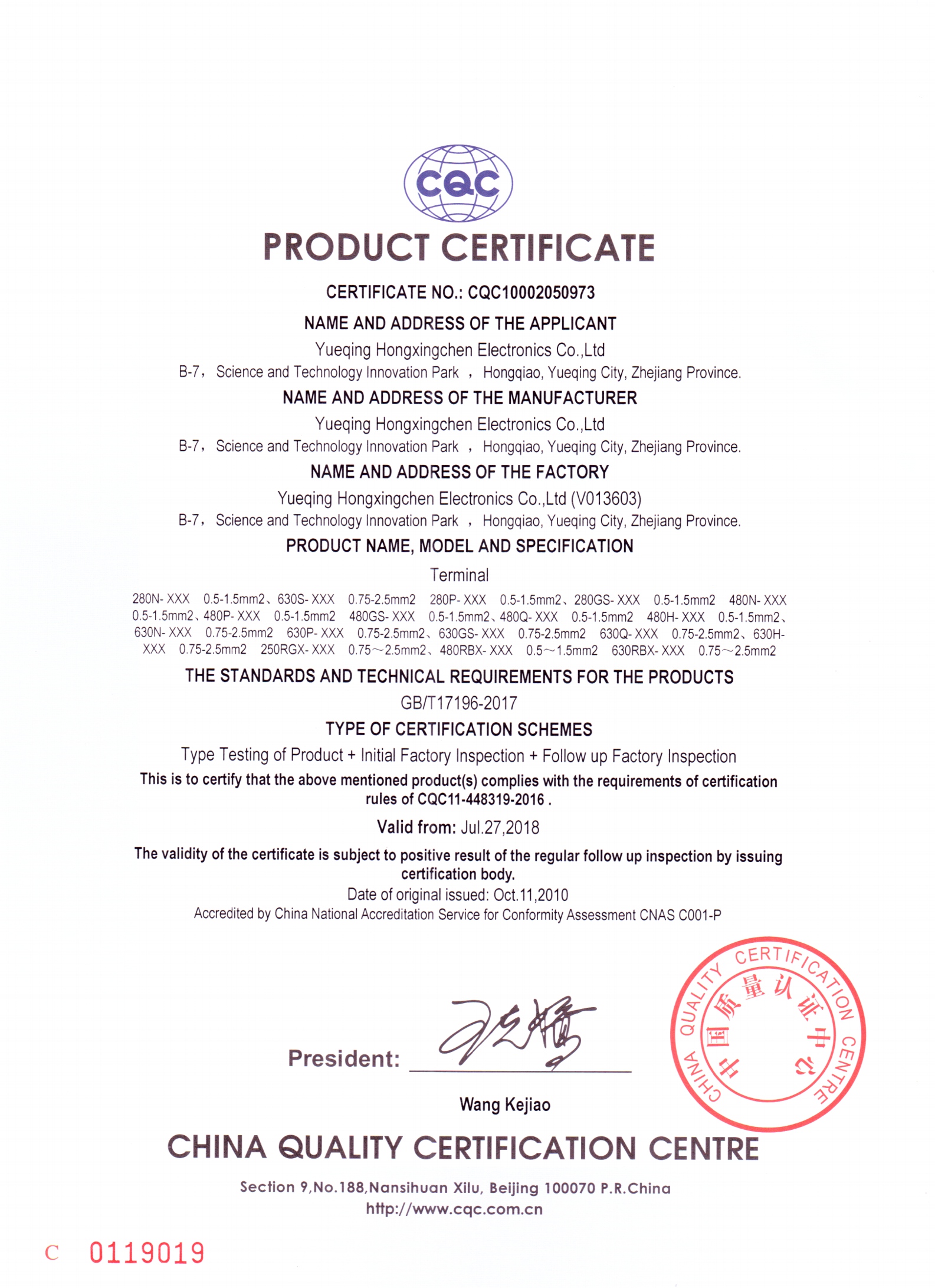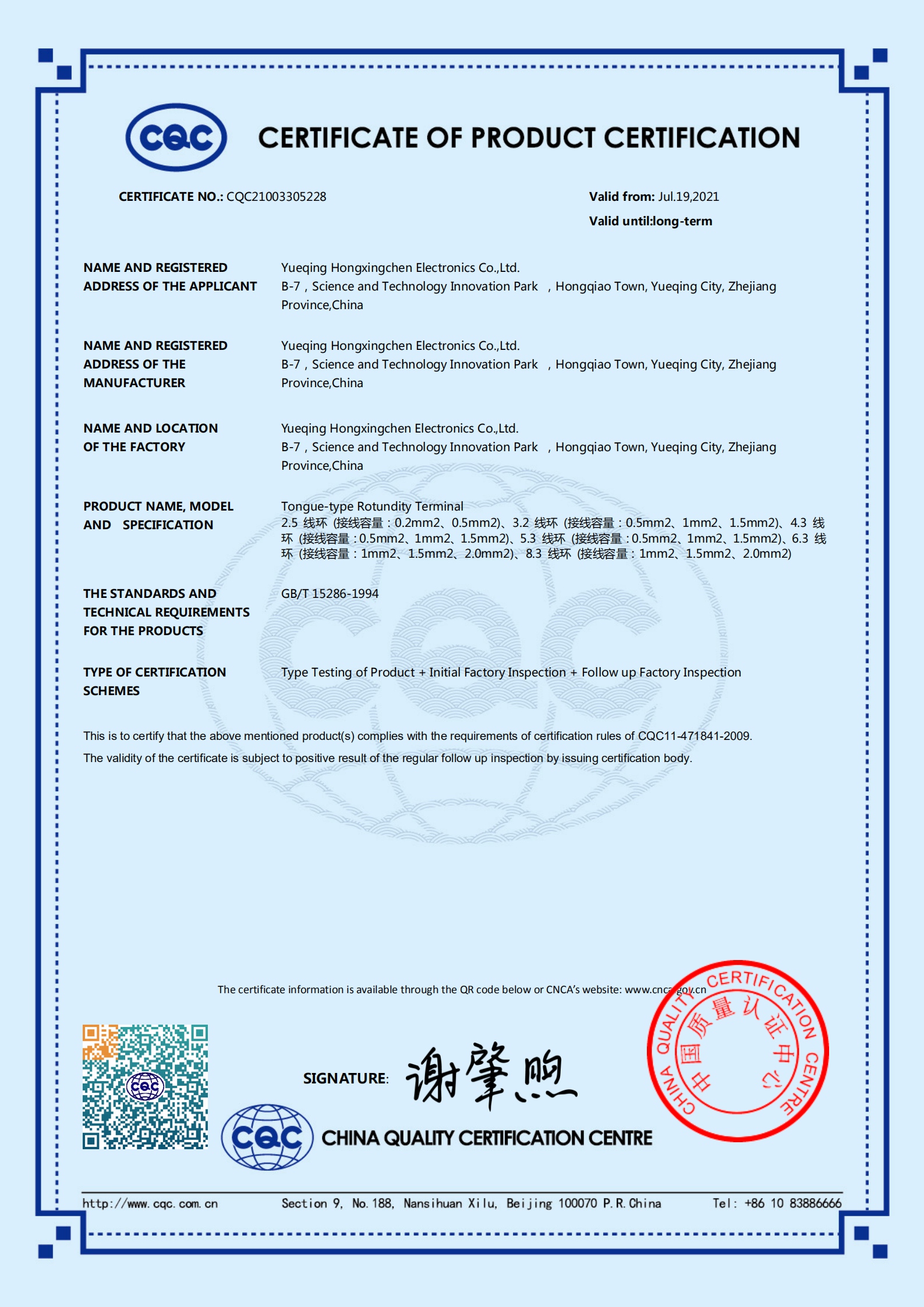 CQC環(huán)形端子認(rèn)證書-英文版