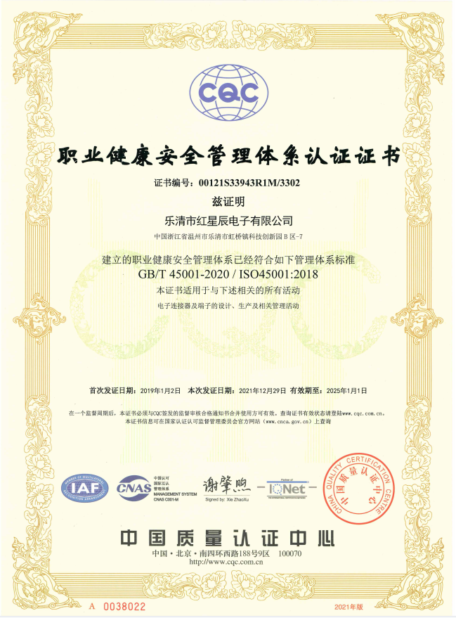 職業(yè)健康安全管理體系認(rèn)證證書