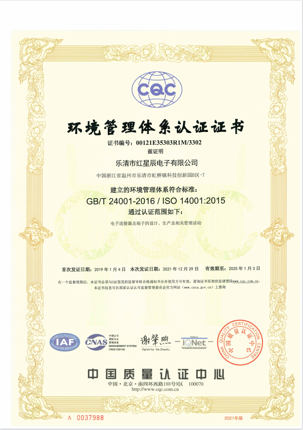 環(huán)境管理體系認(rèn)證證書