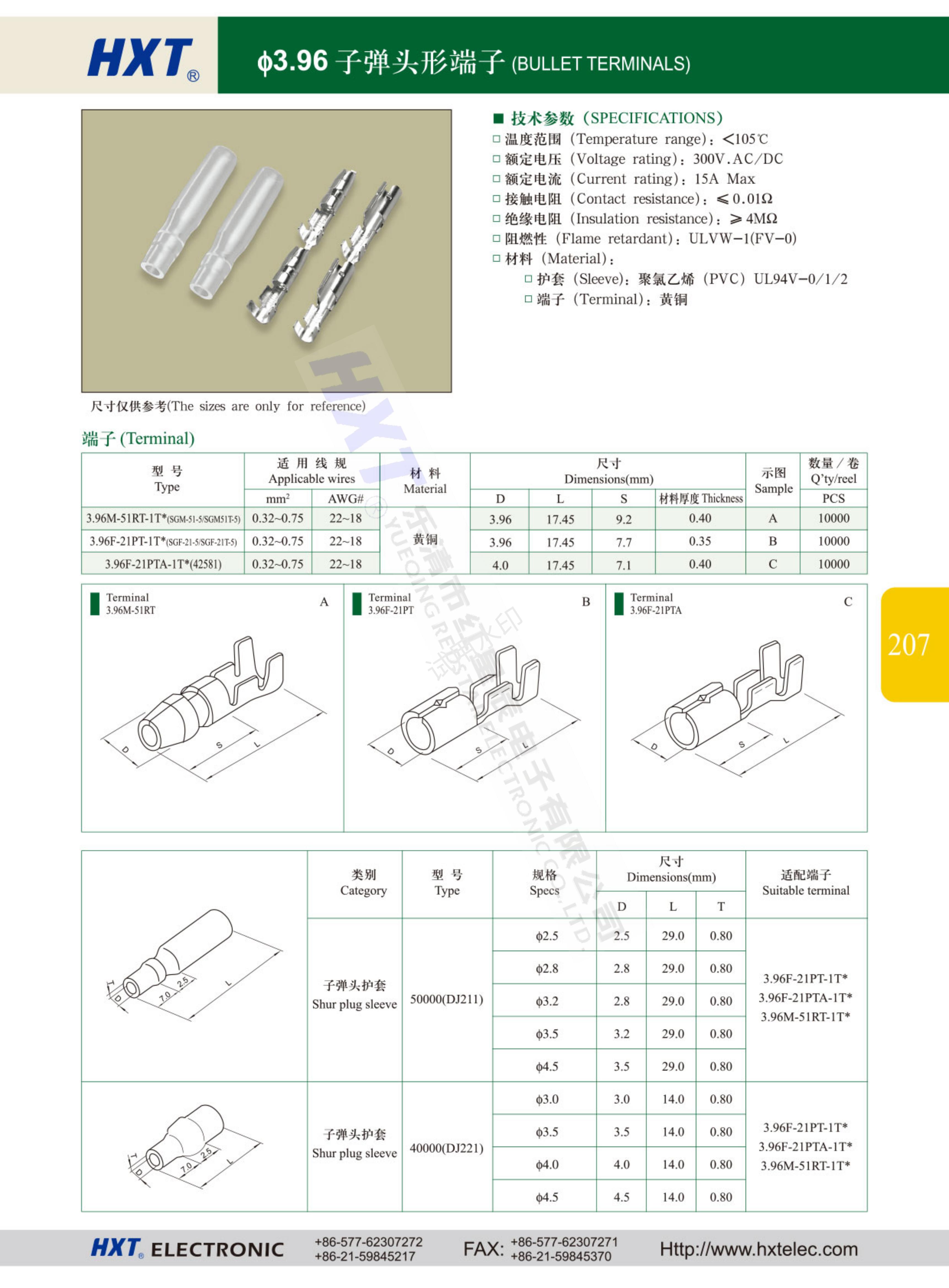 Φ3.96子彈頭形端子 連接器