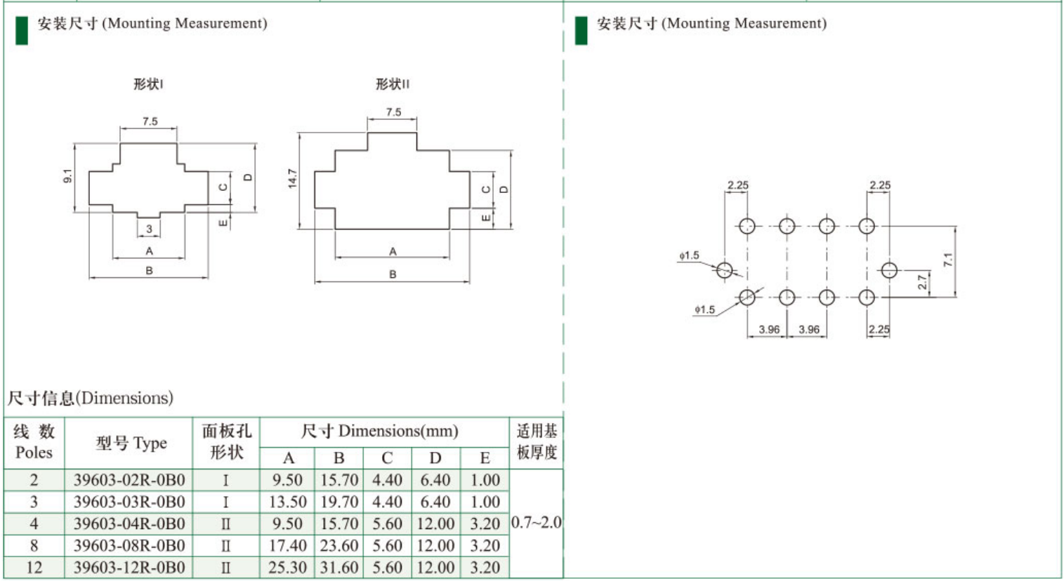 口適用基板厚度(Applicable PC board thickness):0.7~2.0mm